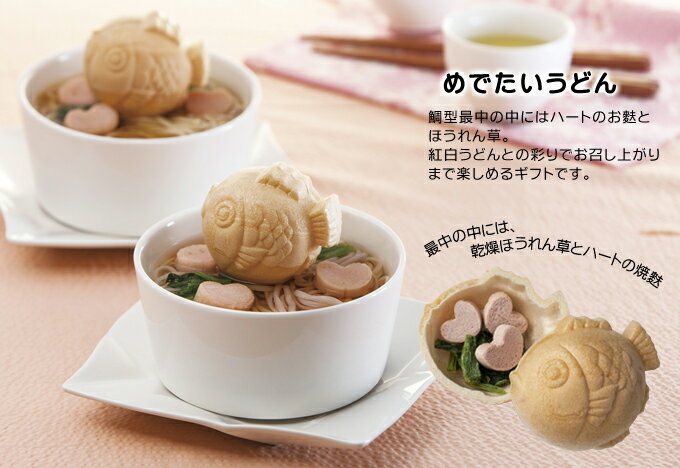 セット内容 ・うどん50g(紅・白)×各1 ・めんつゆ25g×2 ・うどんの具×2 商品サイズ ・箱サイズ:約24cm×10cm×6.5cm ・総重量:約300g 賞味期限 180日 特定原材料 小麦 注意事項 ・こちらの商品は10個からのご注文となります。