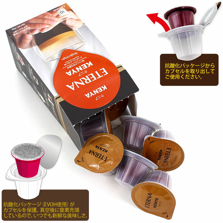 ETERNA KENYA Single Origin Coffee エテルナ ケニア (シングル オリジン コーヒー) ネスプレッソ互換カプセル 5g×10p 強くキレのある酸味。
